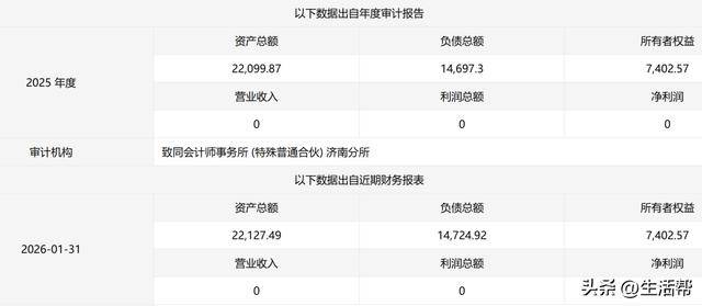 从财政数据来看,2025年停业收入为0,净利润为0;2026年1月停业收入为0,净利润为0。